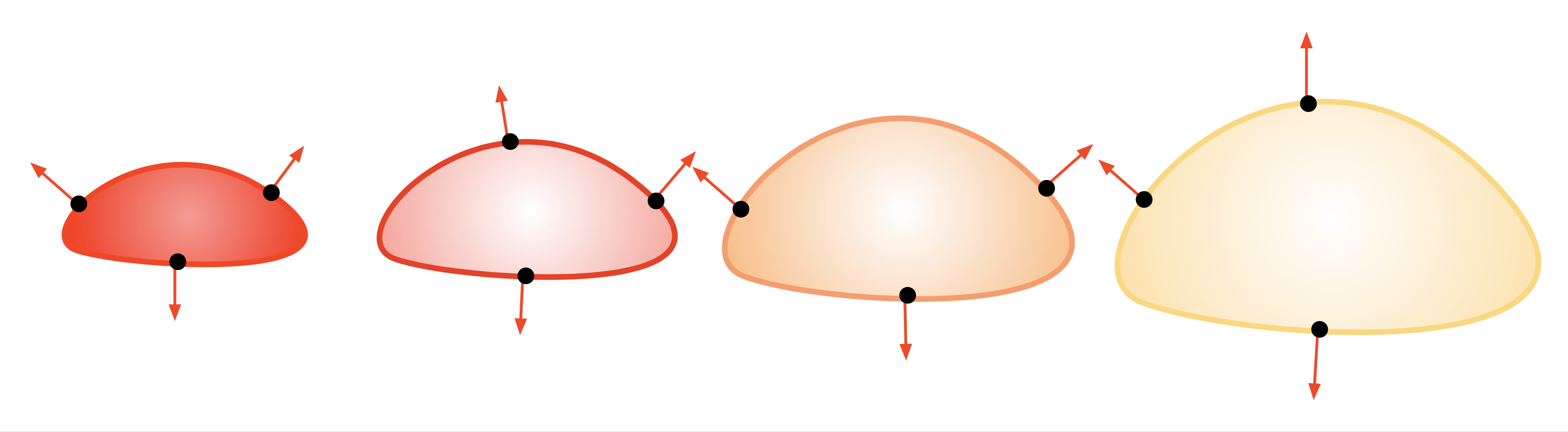 Another situation of interest is that where \(\bV(t,\x)\) is consistently oriented in the direction of the normal vector \(\n_{\Omega(t)}(\x)\), with a (scalar) normal velocity \(v(t,\x)\) independent of \(\Omega(t)\), that is: