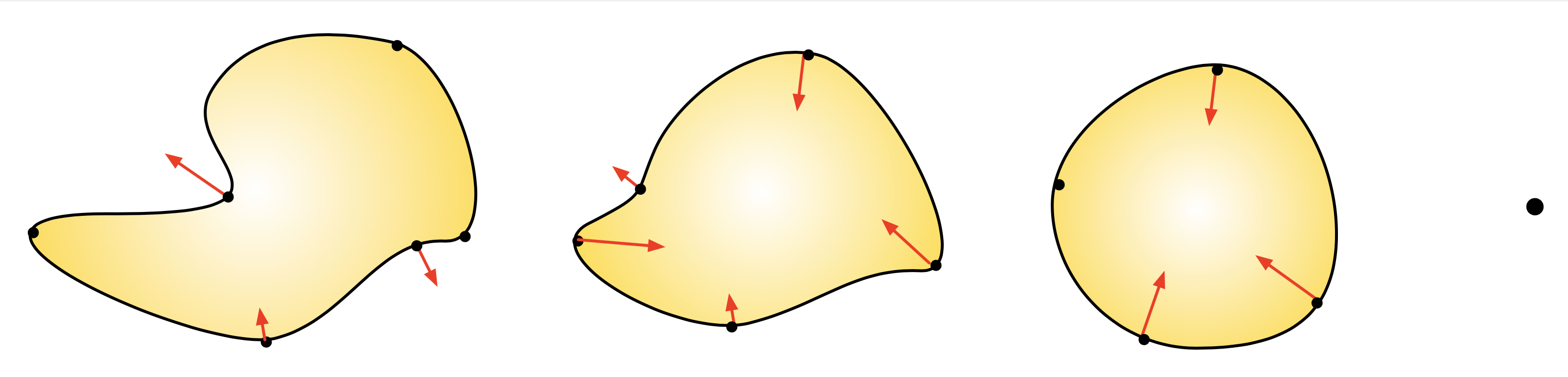 The regions where \(\Omega(t)\) is convex (i.e. \(\kappa_{\Omega(t)}(\x) > 0\)) get resorbed;