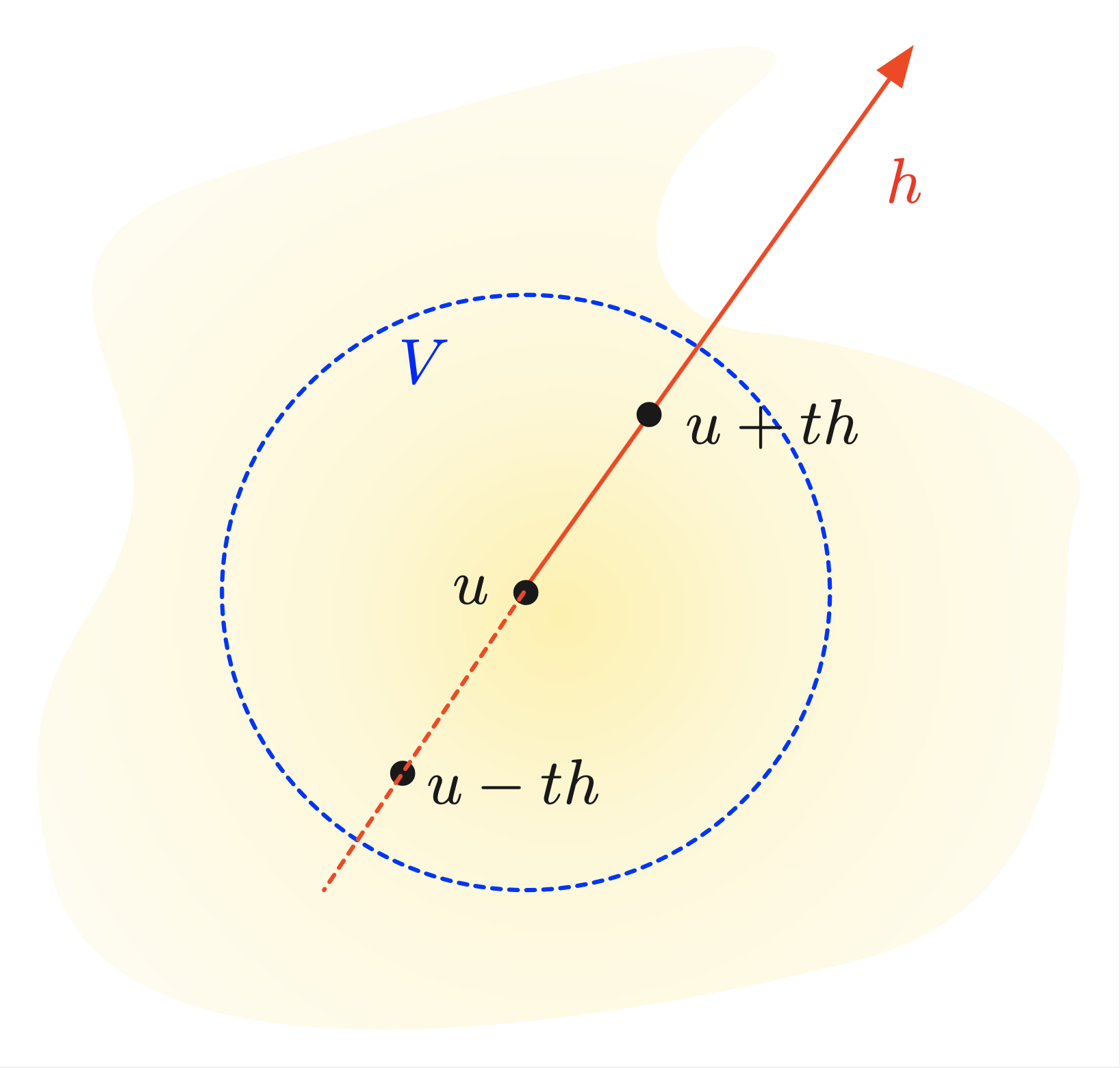 \[h = \beta \nabla C(u) + w, \text{ where } w \perp \nabla C(u), \:\: \beta \neq 0.\]